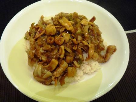 干したこで取った出汁を使ってご飯を炊き、さらに餡にも入れ、あんかけ丼にして食べます。