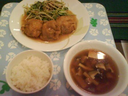 酸ラー湯と蒸し茄子の胡麻だれ和えとごはん。