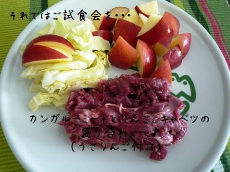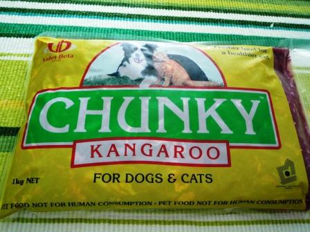 意気揚々とお買い上げしてきた後、さっそく得体の知れない「カンガルーの肉」をわんさんに試食していただきましょう。