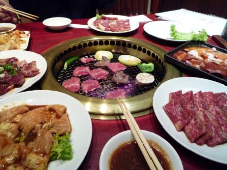 「焼肉で」