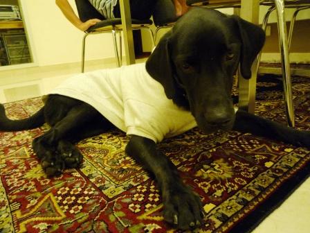 品質チェック中の黒犬
